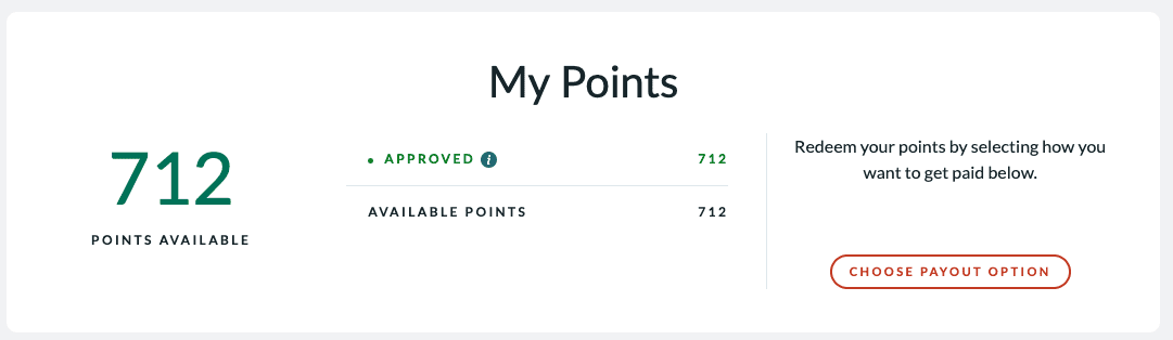 The minimum amount of points that can be redeemed is 500. Once you have enough points you can get a free gift card from a number of restaurants and retailers.